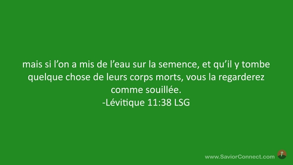 mais si l'on a mis de l'eau sur la semence, et qu'il y tombe quelque chose de leurs corps morts, vous la regarderez comme souillée. -Lévitique 11:38 LSG