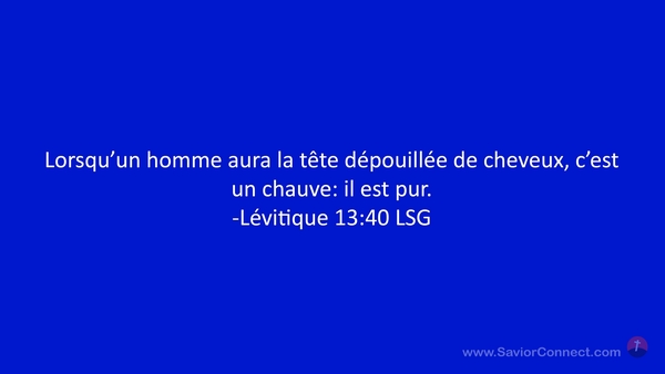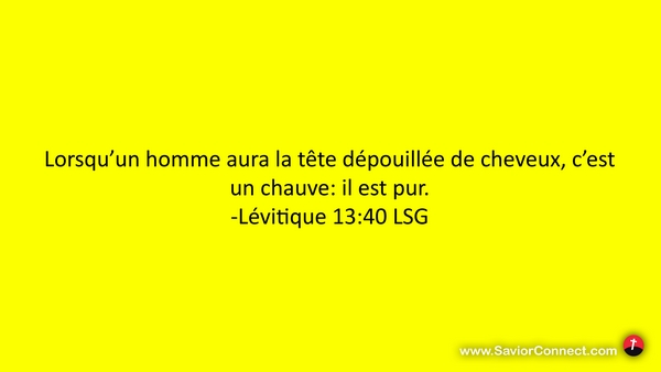 Lorsqu'un homme aura la tête dépouillée de cheveux, c'est un chauve: il est pur. -Lévitique 13:40 LSG
