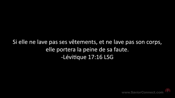 Si elle ne lave pas ses vêtements, et ne lave pas son corps, elle portera la peine de sa faute. -Lévitique 17:16 LSG