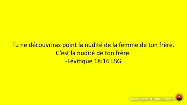 Tu ne découvriras point la nudité de la femme de ton frère. C'est la nudité de ton frère. -Lévitique 18:16 LSG