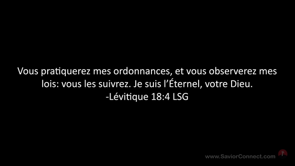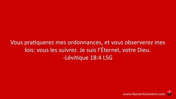 Vous pratiquerez mes ordonnances, et vous observerez mes lois: vous les suivrez. Je suis l'Éternel, votre Dieu. -Lévitique 18:4 LSG