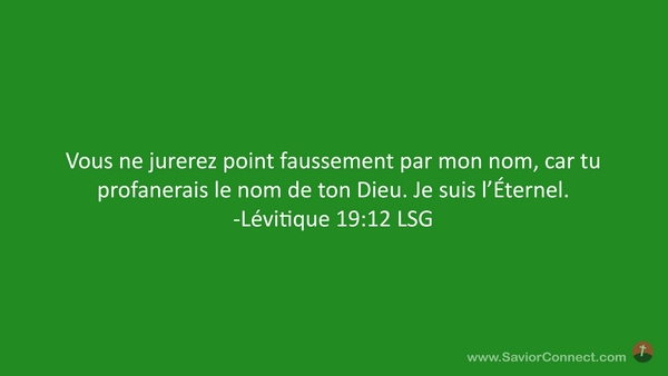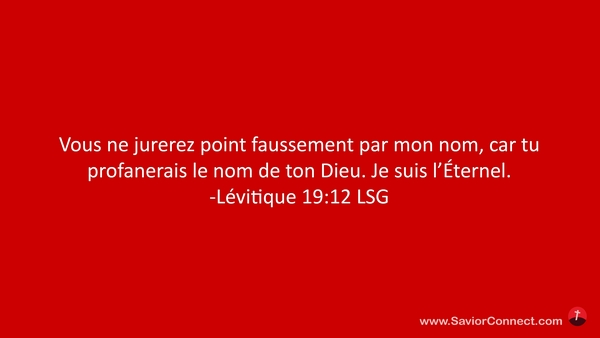 Vous ne jurerez point faussement par mon nom, car tu profanerais le nom de ton Dieu. Je suis l'Éternel. -Lévitique 19:12 LSG