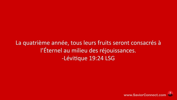 La quatrième année, tous leurs fruits seront consacrés à l'Éternel au milieu des réjouissances. -Lévitique 19:24 LSG