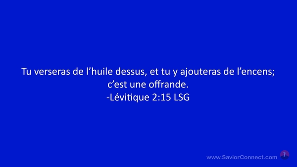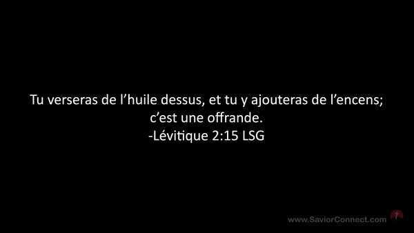 Tu verseras de l'huile dessus, et tu y ajouteras de l'encens; c'est une offrande. -Lévitique 2:15 LSG