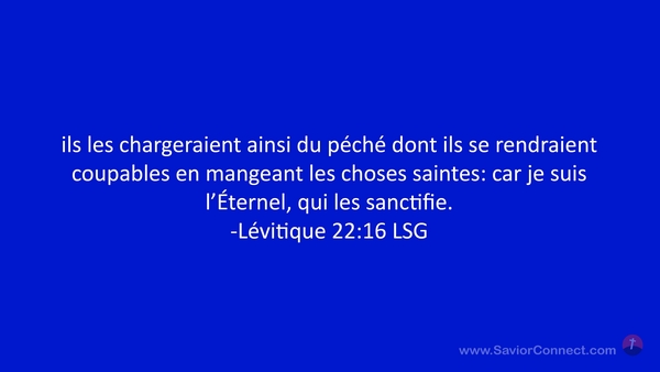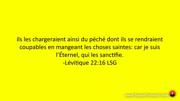 ils les chargeraient ainsi du péché dont ils se rendraient coupables en mangeant les choses saintes: car je suis l'Éternel, qui les sanctifie. -Lévitique 22:16 LSG
