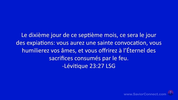 Le dixième jour de ce septième mois, ce sera le jour des expiations: vous aurez une sainte convocation, vous humilierez vos âmes, et vous offrirez à l'Éternel des sacrifices consumés par le feu. -Lévitique 23:27 LSG