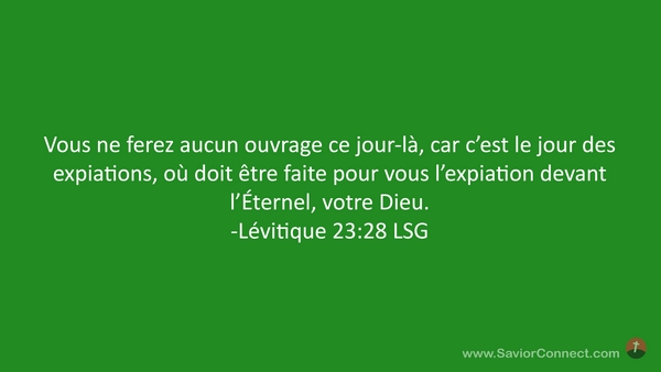 Vous ne ferez aucun ouvrage ce jour-là, car c'est le jour des expiations, où doit être faite pour vous l'expiation devant l'Éternel, votre Dieu. -Lévitique 23:28 LSG