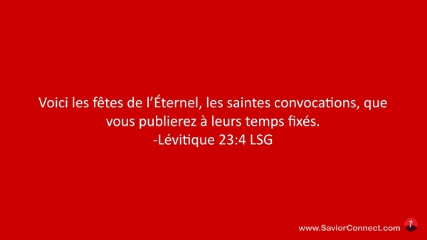 Voici les fêtes de l'Éternel, les saintes convocations, que vous publierez à leurs temps fixés. -Lévitique 23:4 LSG