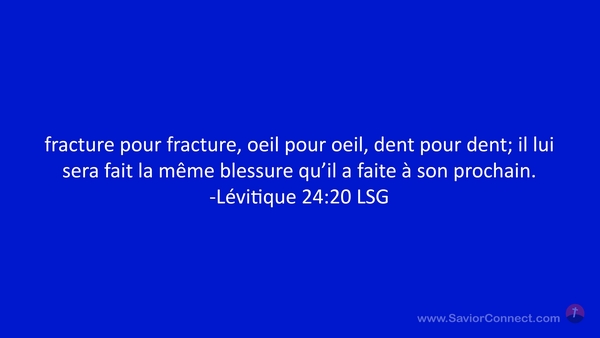 fracture pour fracture, oeil pour oeil, dent pour dent; il lui sera fait la même blessure qu'il a faite à son prochain. -Lévitique 24:20 LSG