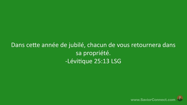 Dans cette année de jubilé, chacun de vous retournera dans sa propriété. -Lévitique 25:13 LSG