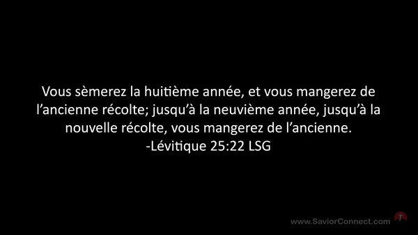 Vous sèmerez la huitième année, et vous mangerez de l'ancienne récolte; jusqu'à la neuvième année, jusqu'à la nouvelle récolte, vous mangerez de l'ancienne. -Lévitique 25:22 LSG
