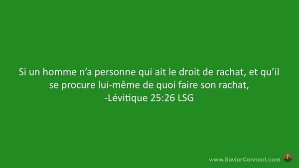 Si un homme n'a personne qui ait le droit de rachat, et qu'il se procure lui-même de quoi faire son rachat, -Lévitique 25:26 LSG