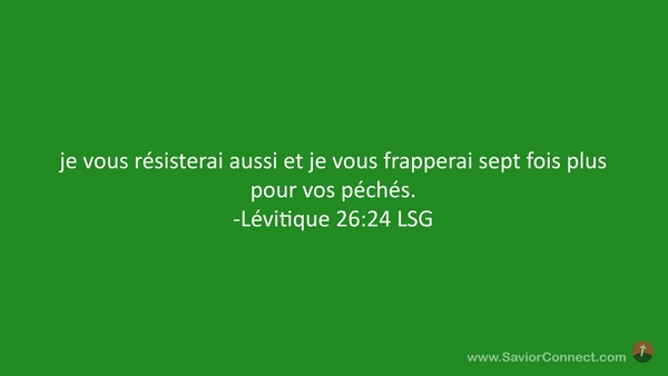 je vous résisterai aussi et je vous frapperai sept fois plus pour vos péchés. -Lévitique 26:24 LSG