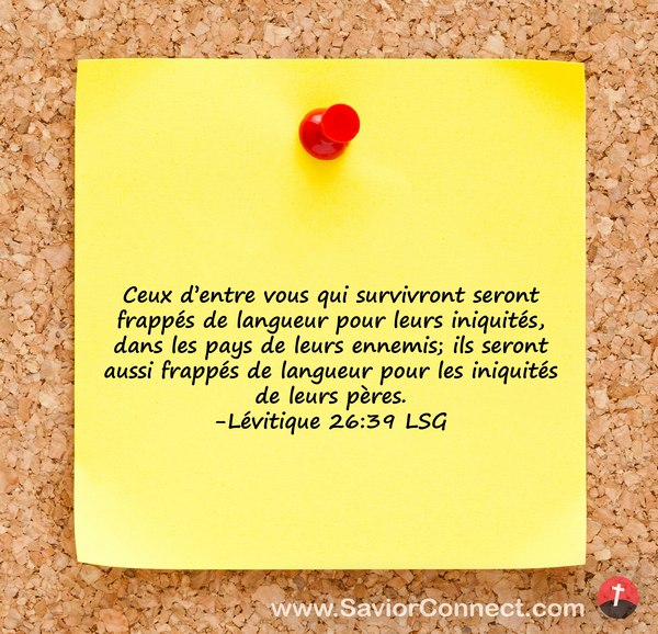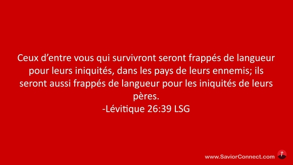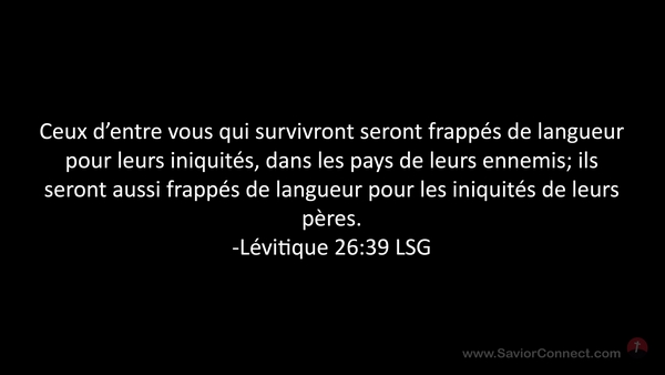 Ceux d'entre vous qui survivront seront frappés de langueur pour leurs iniquités, dans les pays de leurs ennemis; ils seront aussi frappés de langueur pour les iniquités de leurs pères. -Lévitique 26:39 LSG