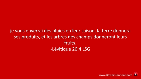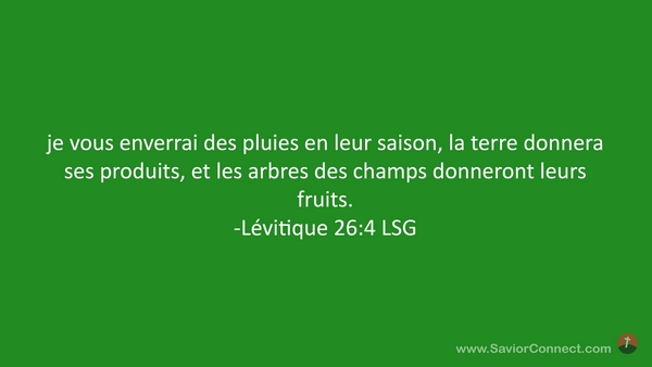 je vous enverrai des pluies en leur saison, la terre donnera ses produits, et les arbres des champs donneront leurs fruits. -Lévitique 26:4 LSG