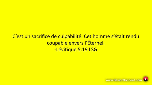 C'est un sacrifice de culpabilité. Cet homme s'était rendu coupable envers l'Éternel. -Lévitique 5:19 LSG