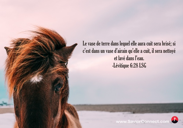Le vase de terre dans lequel elle aura cuit sera brisé; si c'est dans un vase d'airain qu'elle a cuit, il sera nettoyé et lavé dans l'eau. -Lévitique 6:28 LSG