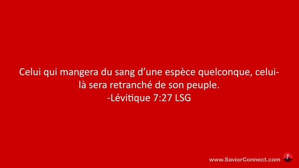 Celui qui mangera du sang d'une espèce quelconque, celui-là sera retranché de son peuple. -Lévitique 7:27 LSG