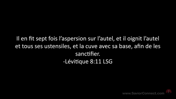 Il en fit sept fois l'aspersion sur l'autel, et il oignit l'autel et tous ses ustensiles, et la cuve avec sa base, afin de les sanctifier. -Lévitique 8:11 LSG