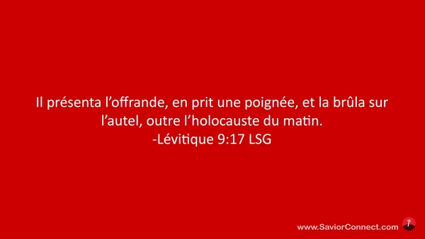 Il présenta l'offrande, en prit une poignée, et la brûla sur l'autel, outre l'holocauste du matin. -Lévitique 9:17 LSG