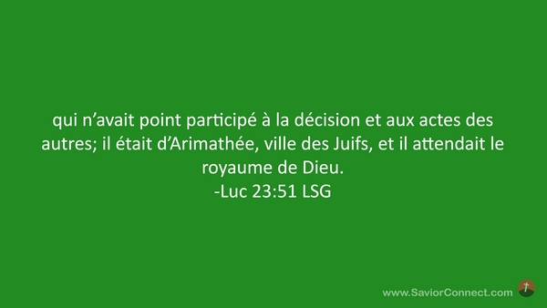 qui n'avait point participé à la décision et aux actes des autres; il était d'Arimathée, ville des Juifs, et il attendait le royaume de Dieu. -Luc 23:51 LSG