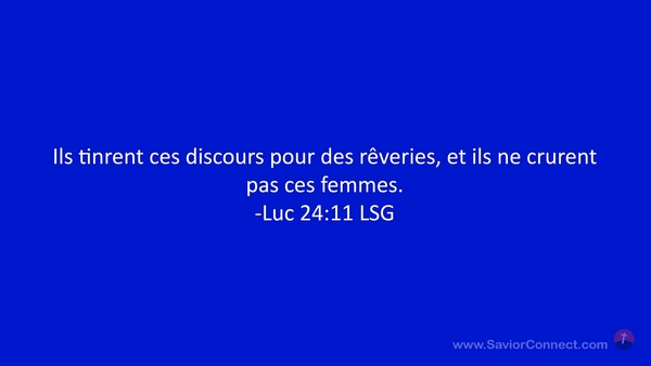 Ils tinrent ces discours pour des rêveries, et ils ne crurent pas ces femmes. -Luc 24:11 LSG