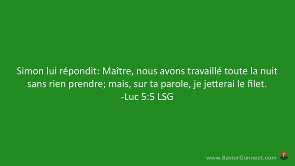 Simon lui répondit: Maître, nous avons travaillé toute la nuit sans rien prendre; mais, sur ta parole, je jetterai le filet. -Luc 5:5 LSG