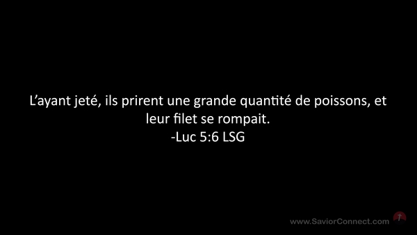 L'ayant jeté, ils prirent une grande quantité de poissons, et leur filet se rompait. -Luc 5:6 LSG