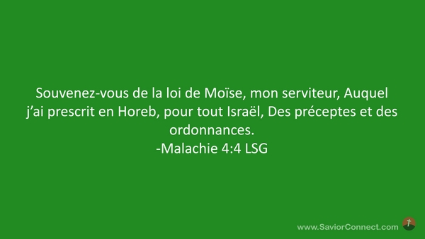 Souvenez-vous de la loi de Moïse, mon serviteur, Auquel j'ai prescrit en Horeb, pour tout Israël, Des préceptes et des ordonnances. -Malachie 4:4 LSG