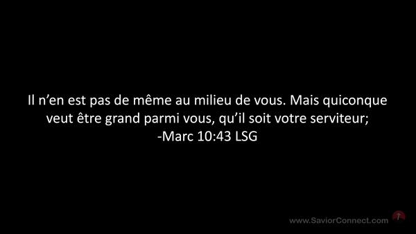 Il n'en est pas de même au milieu de vous. Mais quiconque veut être grand parmi vous, qu'il soit votre serviteur; -Marc 10:43 LSG
