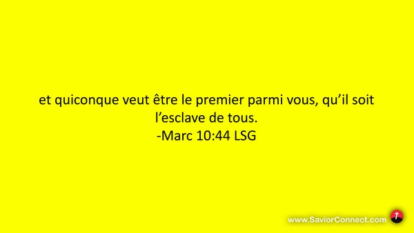 et quiconque veut être le premier parmi vous, qu'il soit l'esclave de tous. -Marc 10:44 LSG