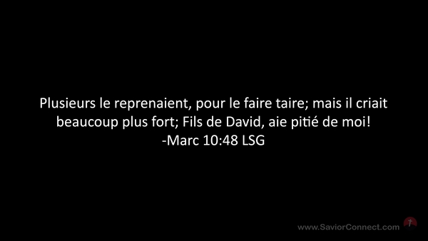 Plusieurs le reprenaient, pour le faire taire; mais il criait beaucoup plus fort; Fils de David, aie pitié de moi! -Marc 10:48 LSG