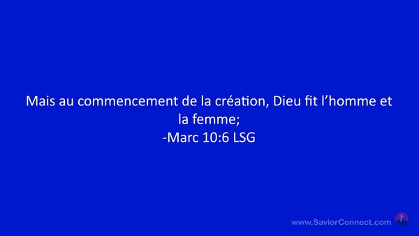 Mais au commencement de la création, Dieu fit l'homme et la femme; -Marc 10:6 LSG