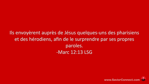 Ils envoyèrent auprès de Jésus quelques-uns des pharisiens et des hérodiens, afin de le surprendre par ses propres paroles. -Marc 12:13 LSG