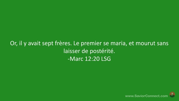 Or, il y avait sept frères. Le premier se maria, et mourut sans laisser de postérité. -Marc 12:20 LSG