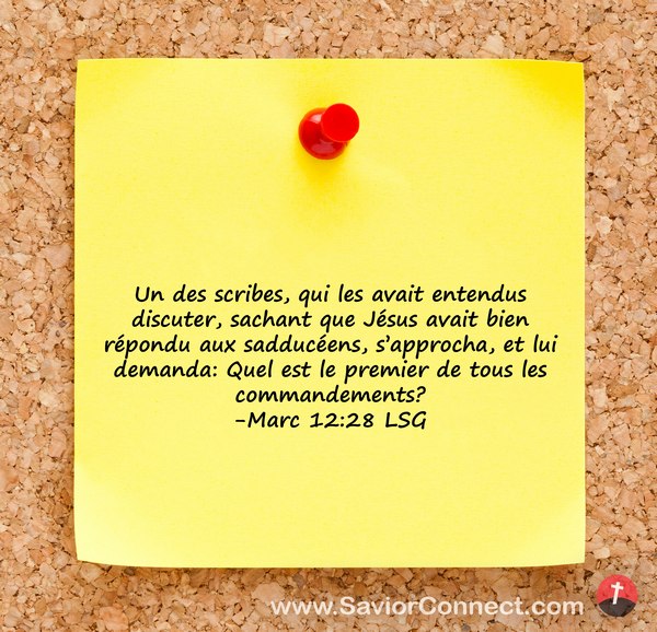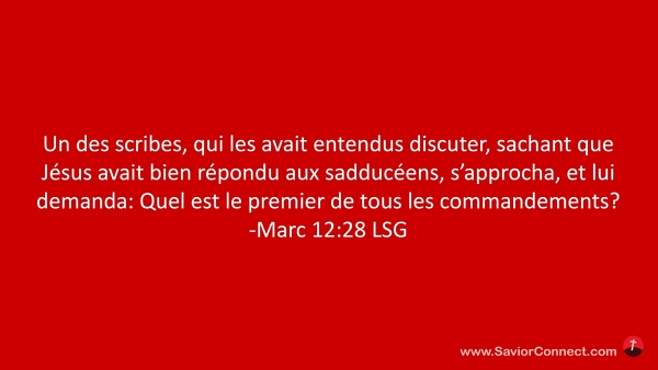 Un des scribes, qui les avait entendus discuter, sachant que Jésus avait bien répondu aux sadducéens, s'approcha, et lui demanda: Quel est le premier de tous les commandements? -Marc 12:28 LSG