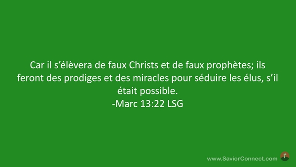 Car il s'élèvera de faux Christs et de faux prophètes; ils feront des prodiges et des miracles pour séduire les élus, s'il était possible. -Marc 13:22 LSG
