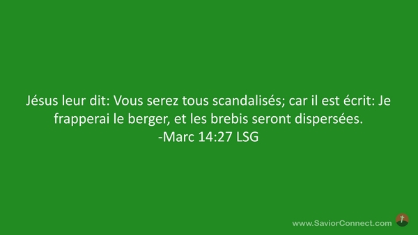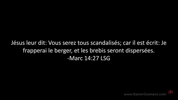 Jésus leur dit: Vous serez tous scandalisés; car il est écrit: Je frapperai le berger, et les brebis seront dispersées. -Marc 14:27 LSG