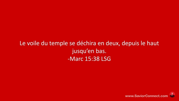 Le voile du temple se déchira en deux, depuis le haut jusqu'en bas. -Marc 15:38 LSG