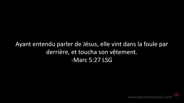 Ayant entendu parler de Jésus, elle vint dans la foule par derrière, et toucha son vêtement. -Marc 5:27 LSG