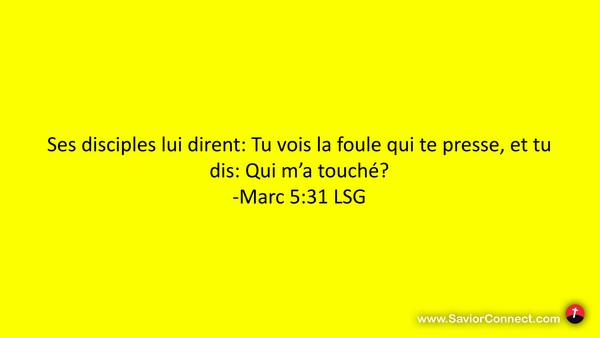 Ses disciples lui dirent: Tu vois la foule qui te presse, et tu dis: Qui m'a touché? -Marc 5:31 LSG