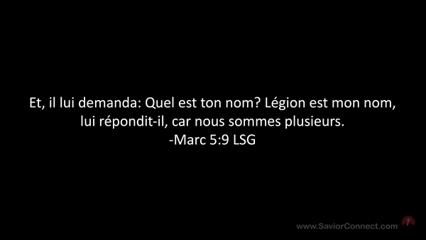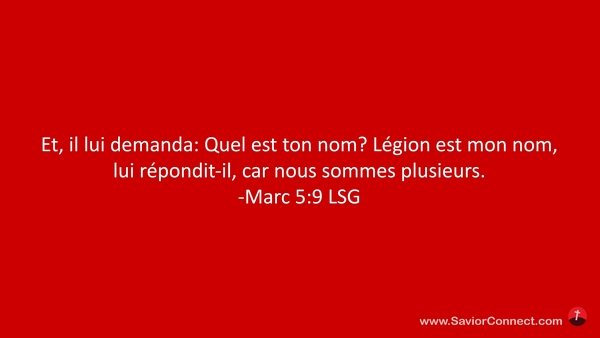 Et, il lui demanda: Quel est ton nom? Légion est mon nom, lui répondit-il, car nous sommes plusieurs. -Marc 5:9 LSG