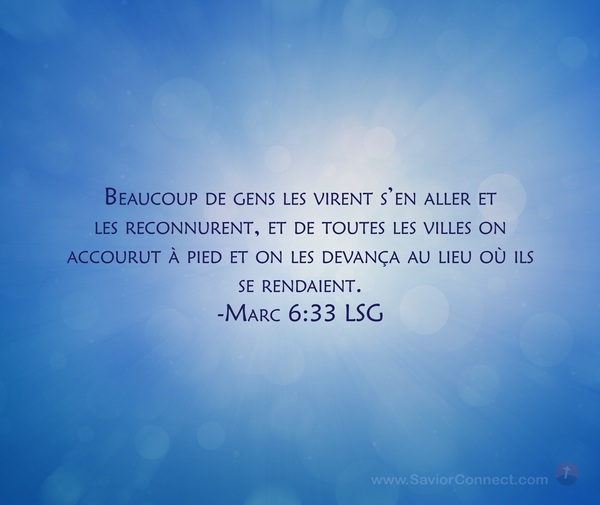 Beaucoup de gens les virent s'en aller et les reconnurent, et de toutes les villes on accourut à pied et on les devança au lieu où ils se rendaient. -Marc 6:33 LSG