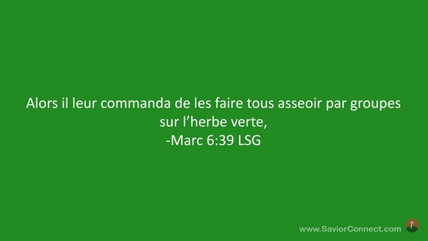 Alors il leur commanda de les faire tous asseoir par groupes sur l'herbe verte, -Marc 6:39 LSG