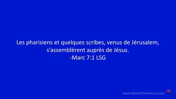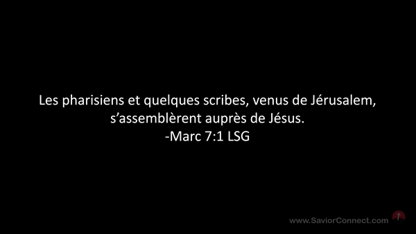 Les pharisiens et quelques scribes, venus de Jérusalem, s'assemblèrent auprès de Jésus. -Marc 7:1 LSG