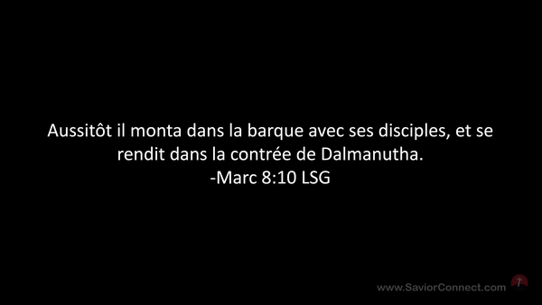 Aussitôt il monta dans la barque avec ses disciples, et se rendit dans la contrée de Dalmanutha. -Marc 8:10 LSG