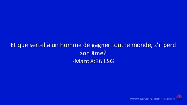 Et que sert-il à un homme de gagner tout le monde, s'il perd son âme? -Marc 8:36 LSG