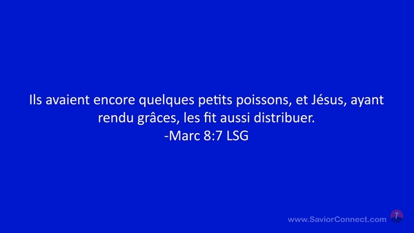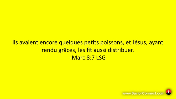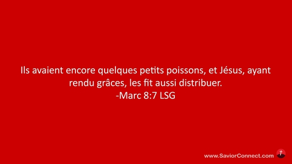 Ils avaient encore quelques petits poissons, et Jésus, ayant rendu grâces, les fit aussi distribuer. -Marc 8:7 LSG