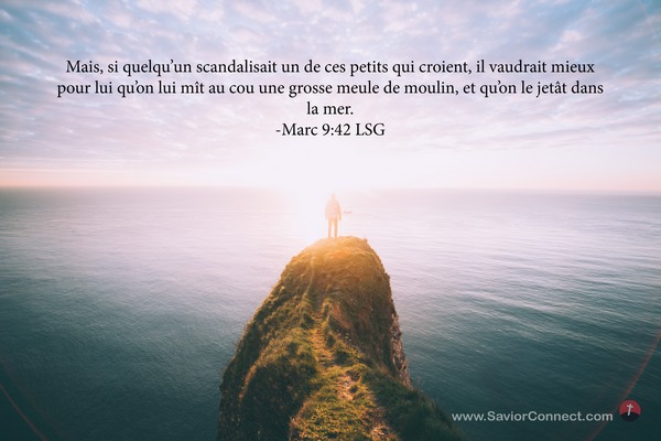 Mais, si quelqu'un scandalisait un de ces petits qui croient, il vaudrait mieux pour lui qu'on lui mît au cou une grosse meule de moulin, et qu'on le jetât dans la mer. -Marc 9:42 LSG