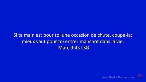 Si ta main est pour toi une occasion de chute, coupe-la; mieux vaut pour toi entrer manchot dans la vie, -Marc 9:43 LSG